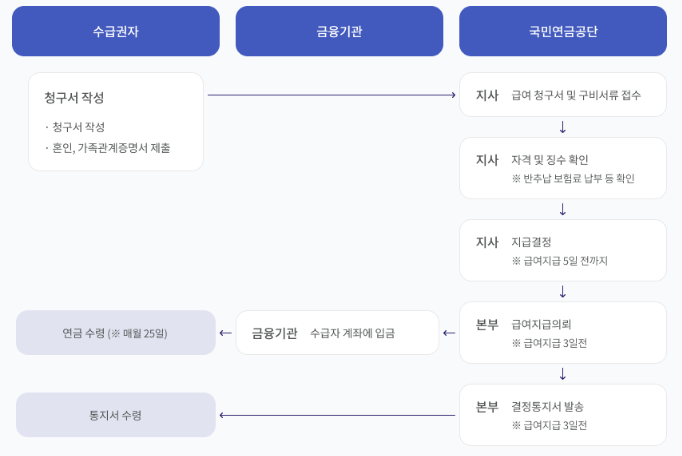 수급자는 국민연금공단을 통해 본인 명의 계좌로 지급받습니다.