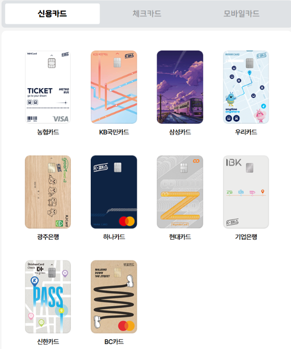 신한·KB국민·NH농협·하나·우리·현대·BC·기업·삼성카드 등 주요 카드사 앱이나 누리집에서 신용·체크·선불 형태로 자유롭게 발급할 수 있습니다.