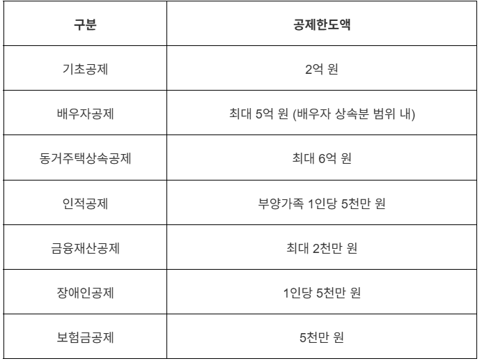 여기에 추가로 배우자, 직계존비속, 장애인, 보험금 등 각종 공제를 합산할 수 있습니다.