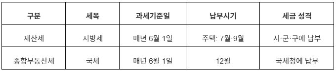 보유세는 크게 재산세와 종합부동산세(종부세)로 나뉘며, 과세 기준일은 매년 6월 1일입니다.