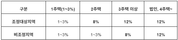 중과(8~12%)는 대부분 조정지역에서 발생하므로 매수 시점 기준으로 매월 확인이 필요합니다.