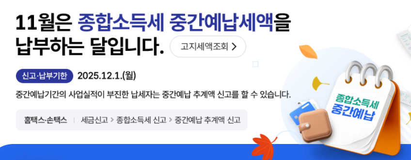 2025년 종합소득세 중간예납의 공식 납부기한은 12월 1일입니다.