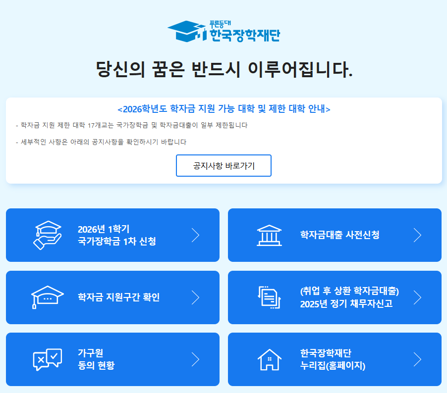 한국장학재단 홈페이지에서 바로 신청이 가능합니다.